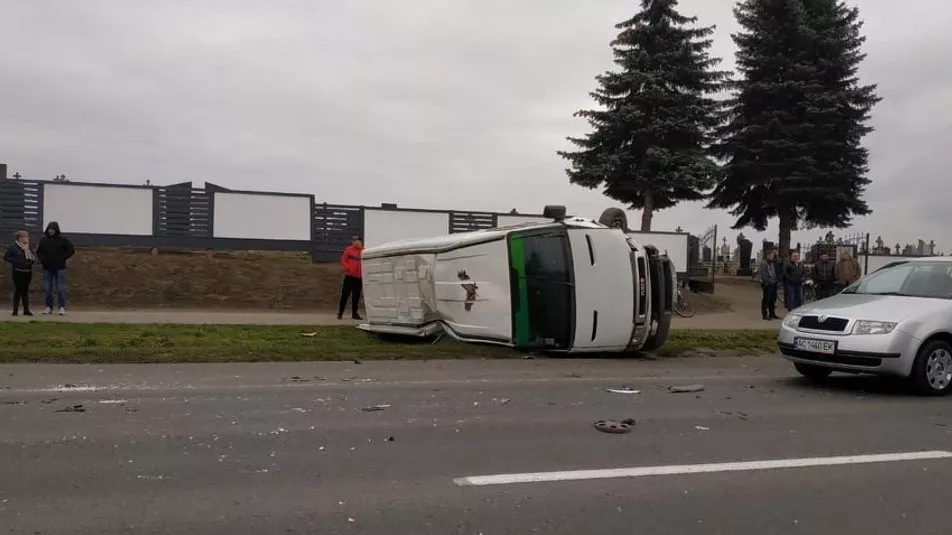 У Луцьку трапилась ДТП за участю трьох автівок: перевернувся бус