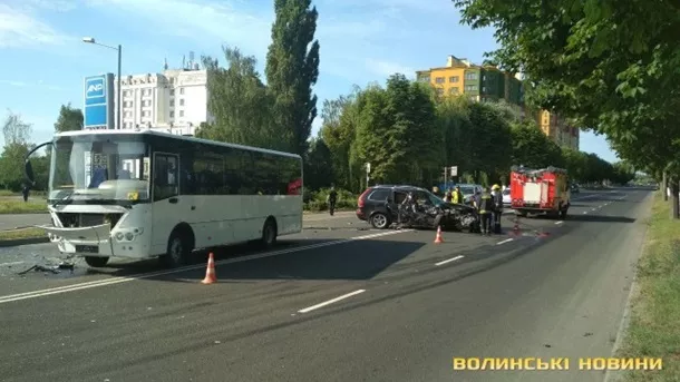 Відзначається, що автобус протаранив позашляховик Volvo, який раптово виїхав на зустрічну смугу. Від сильного удару права частина автомобіля повністю розбита.