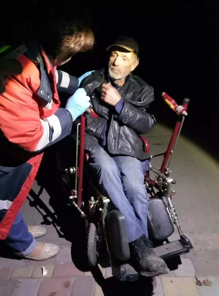 Там чоловік першої групи інвалідності на візку їздив проїжджою частиною дороги. Чоловік перебував у стані сильного алкогольного сп’яніння, не міг назвати не те, що адреси проживання, а й власного імені. Ліва шина візка була проколота. Спроба накачати виявилася невдалою.