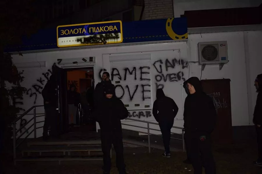 У Луцьку учасники “Національної дружини” взялися за блокування ігрових закладів