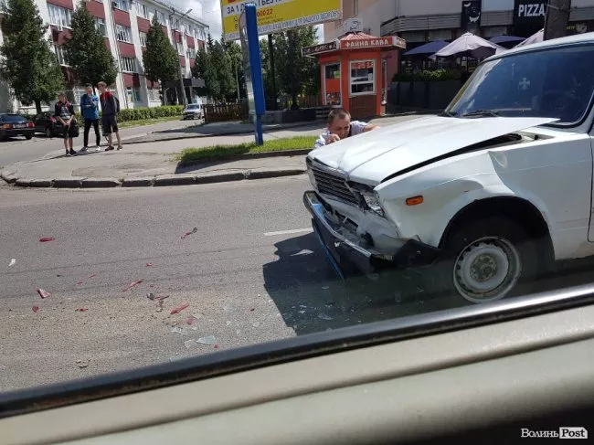 У Луцька на проспекті Перемоги трапилась дорожньо-транспортна пригода за участі Mercedes і ВАЗ, з номерним знаком, який засвідчує, що це поліцейська автівка.