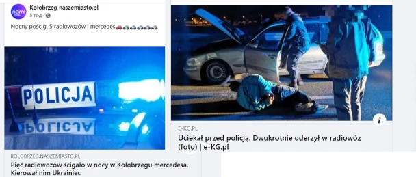 Автомобіль мчав до міста Кукін, далі до Страмніка, де збив поліцейське авто. Звідти він гайнув до Бялгорода, Щецина і ще трьох міст, а зупинили його лише в четвертому – Колобжегу, де йому заблокували рух. Але він встиг пошкодити ще одне авто поліції.