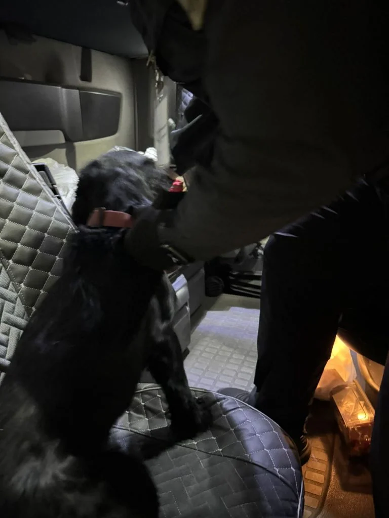 Ввечері на прикордонний контроль прибув вантажний автомобіль Volvo під керуванням 42-річного мешканця Чернігівської області. Під час огляду транспортного засобу службовий собака, натренований на пошук наркотиків, зреагував на кабіну авто.