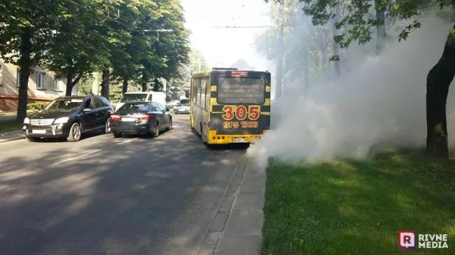 У центрі Рівного на вулиці Соборній під час руху загорілася маршрутка. У салоні громадського транспорту перебували пасажири.