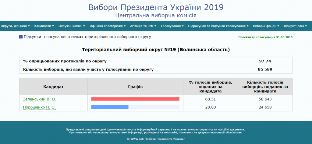 Станом на 11-ту годину 23-го квітня опрацьовано 97, 7 відсотків протоколів.