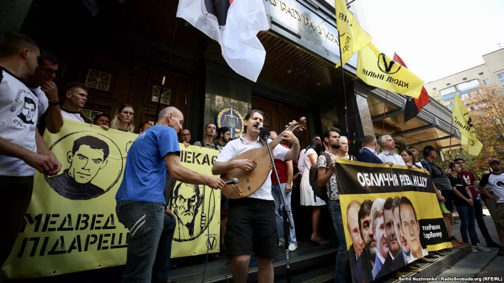 У вівторок, 4-го вересня, у Києві активісти пікетували будівлю Генеральної прокуратури з вимогою притягнути до кримінальної відповідальності українського політика Віктора Медведчука, який був держадвокатом українського поета та дисидента Василя Стуса.