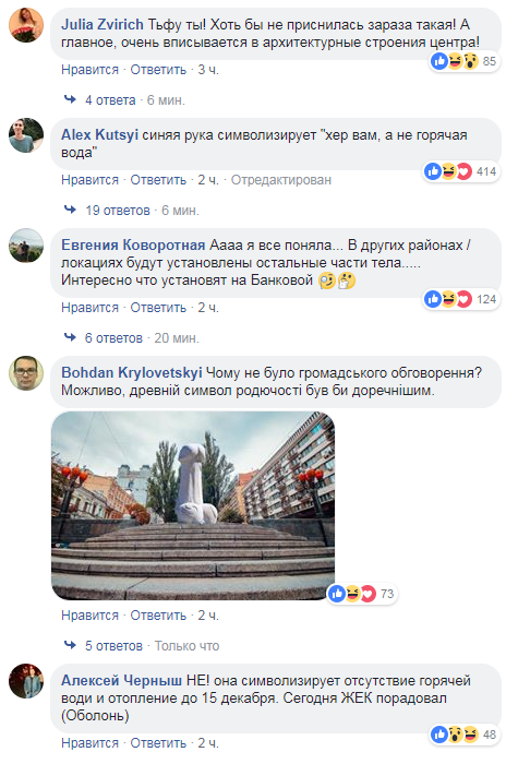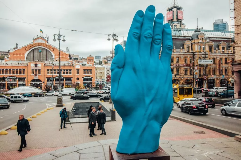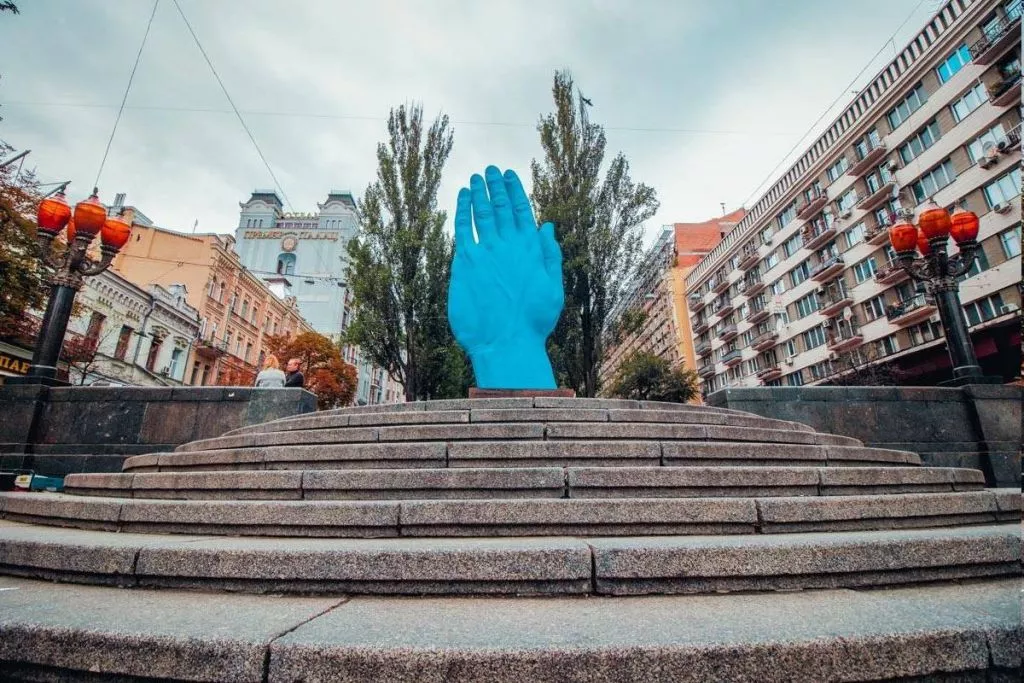 У центрі Києва на місці Леніна з’явилася гігантська синя рука