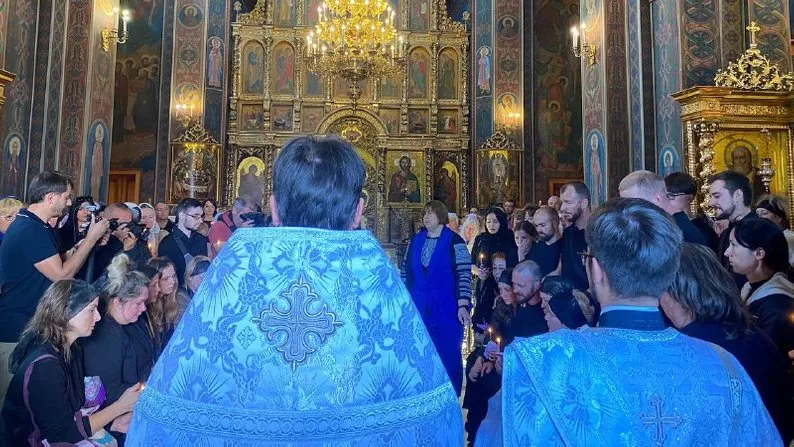 До Спасо-Преображенського кафедрального собору, де відбулася церемонія прощання, прийшли кілька десятків людей.