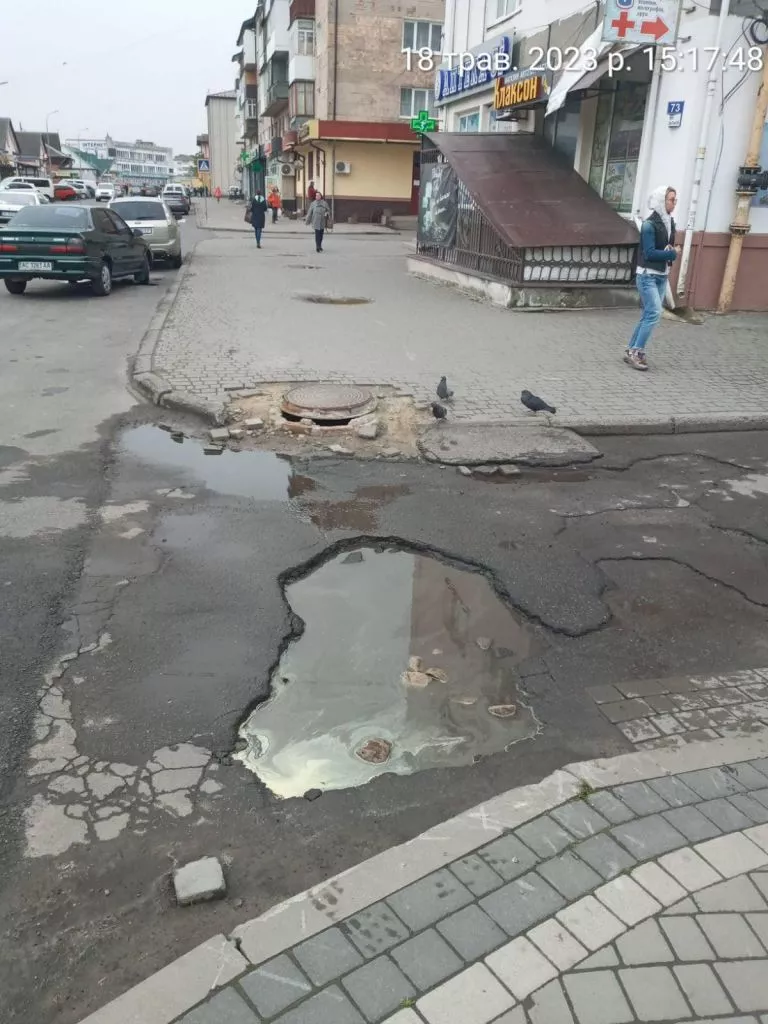 “Просівший каналізаційний люк, місцями відсутня бруківка – все це створює незручності при пересуванні вулицею та може спричинити травмування пішоходів”, – йдеться у дописі.