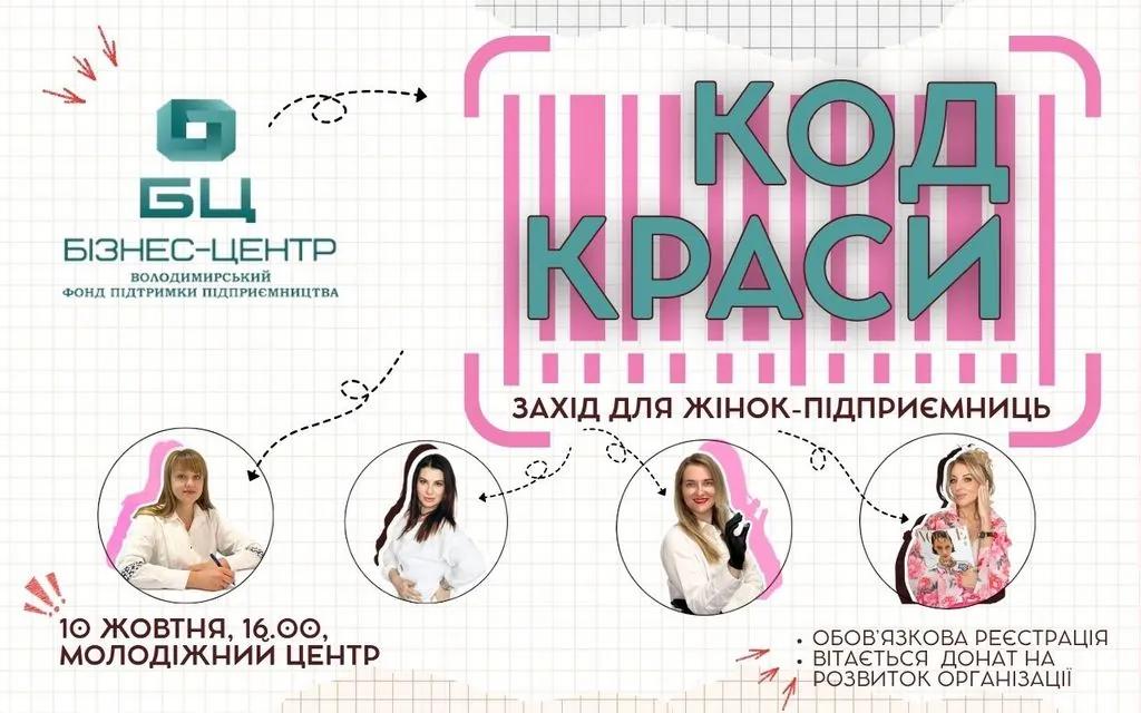 10-го жовтня о 16:00 у Молодіжному центрі Володимира відбудеться подія для жінок-підприємниць під назвою «КОД КРАСИ». Це вже третій захід для підприємниць Володимирщини, який реалізується у форматі щоквартальних зустрічей.