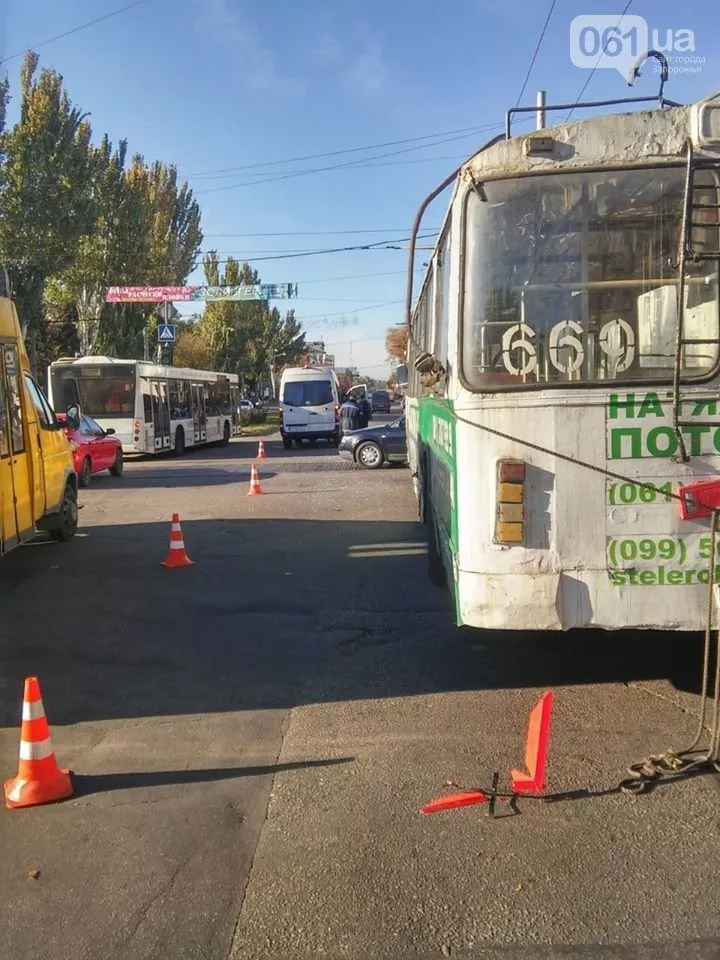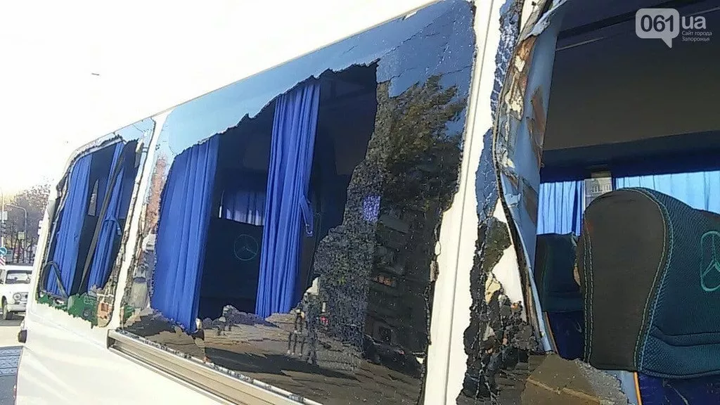 У Запоріжжі обірваний тролей вибив скло у маршрутці. Інцидент стався на перетині пр. Соборного та вул. Лепика.