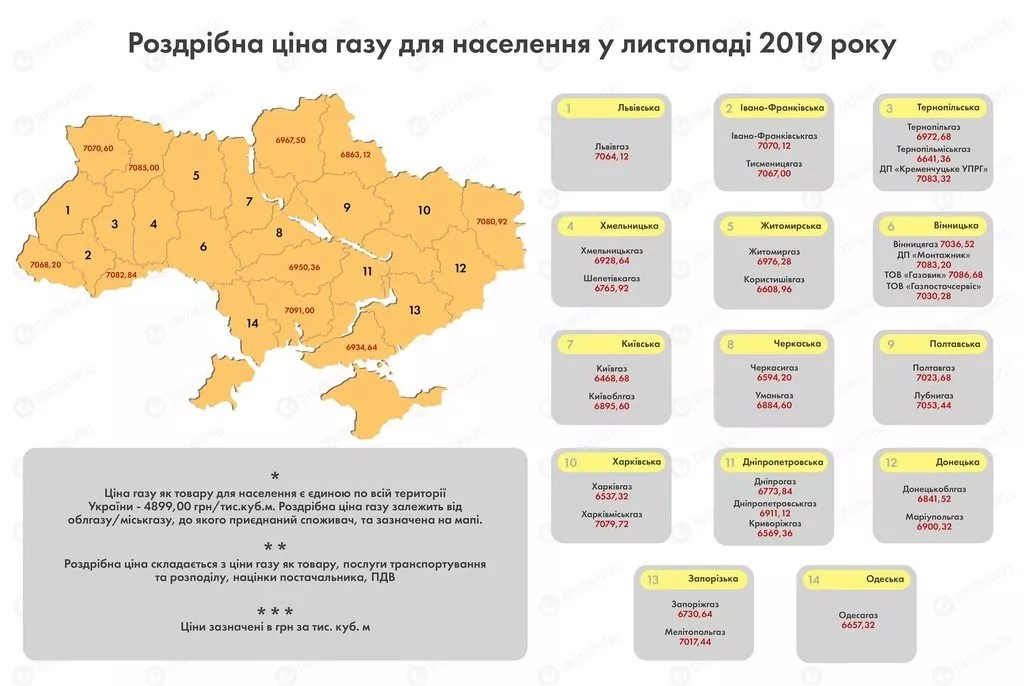 Втім, кінцеві роздрібні ціни на газ відрізняються в залежності від регіону. Це обумовлено тарифом на розподіл, який встановлює НКРЕКП, а також від націнки, яку встановлює кожен газзбут самостійно.