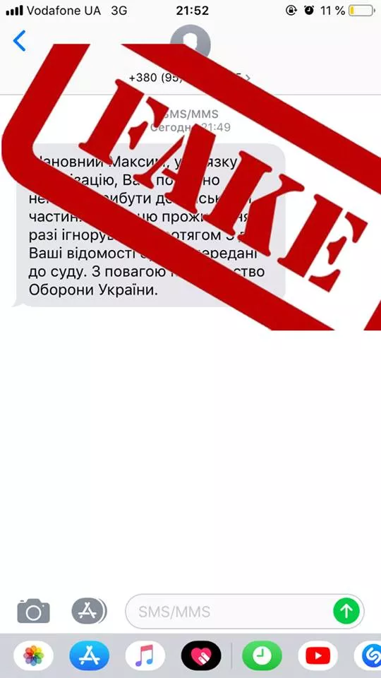 Користувачам мобільних мереж від імені Міністерства Оборони України розсилаються повідомлення про необхідності прибути до військових комісаріатів у зв’язку із мобілізацією.