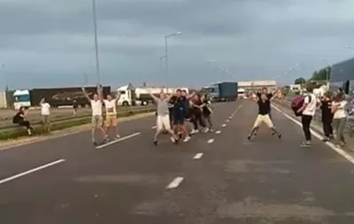 Група громадян України, чекаючи своєї черги на українсько-польському кордоні в пункті пропуску Краковець, влаштувала запальні танці.