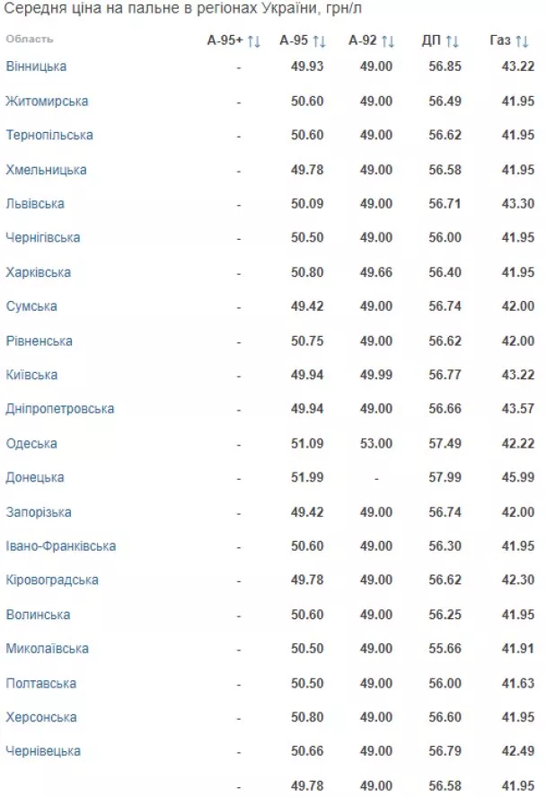 Варто зазначити, що в таблиці представлені усереднені ціни заправок по всій Україні, які можуть відрізнятись у містах, залежно від регіону країни.