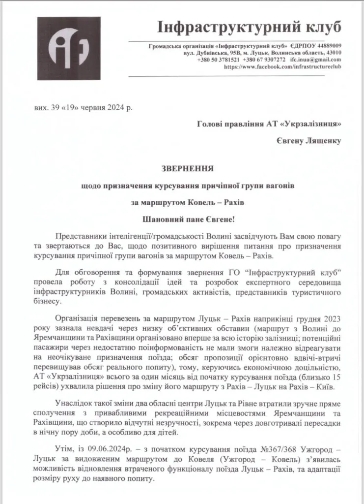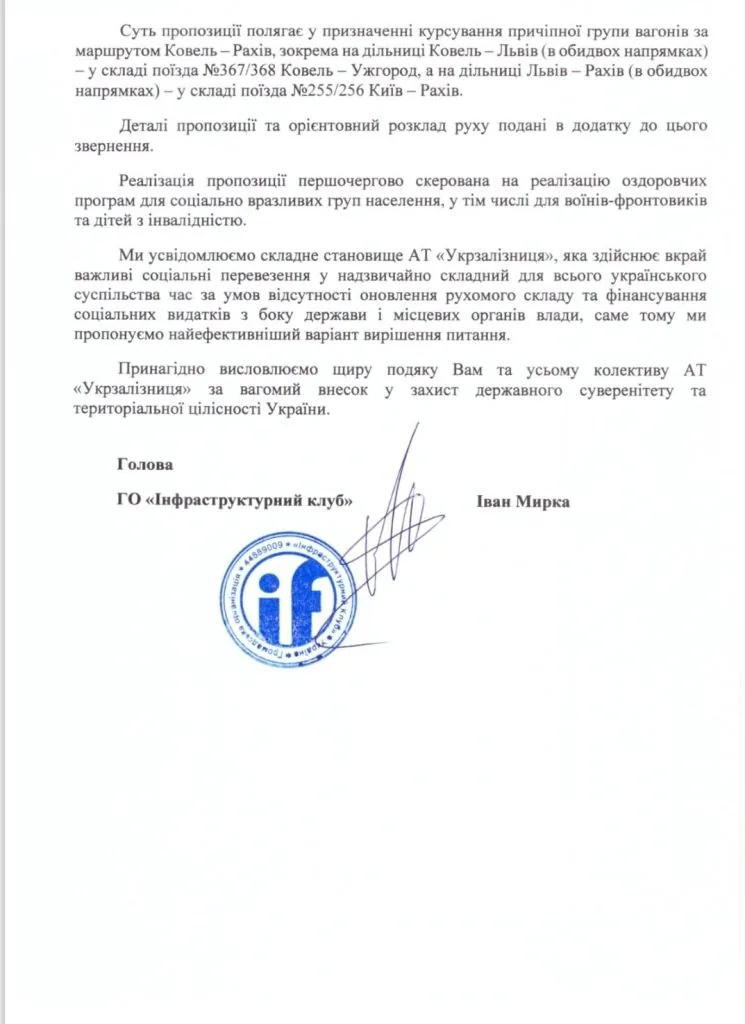 Про це у фейсбуці повідомив очільник ГО «Інфраструктурний клуб» Іван Мирка.