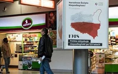 На території аеропорту імені Шопена у Варшаві з’явилася експозиція з картами Польщі, на яких Львів і Вільнюс включені до складу республіки.