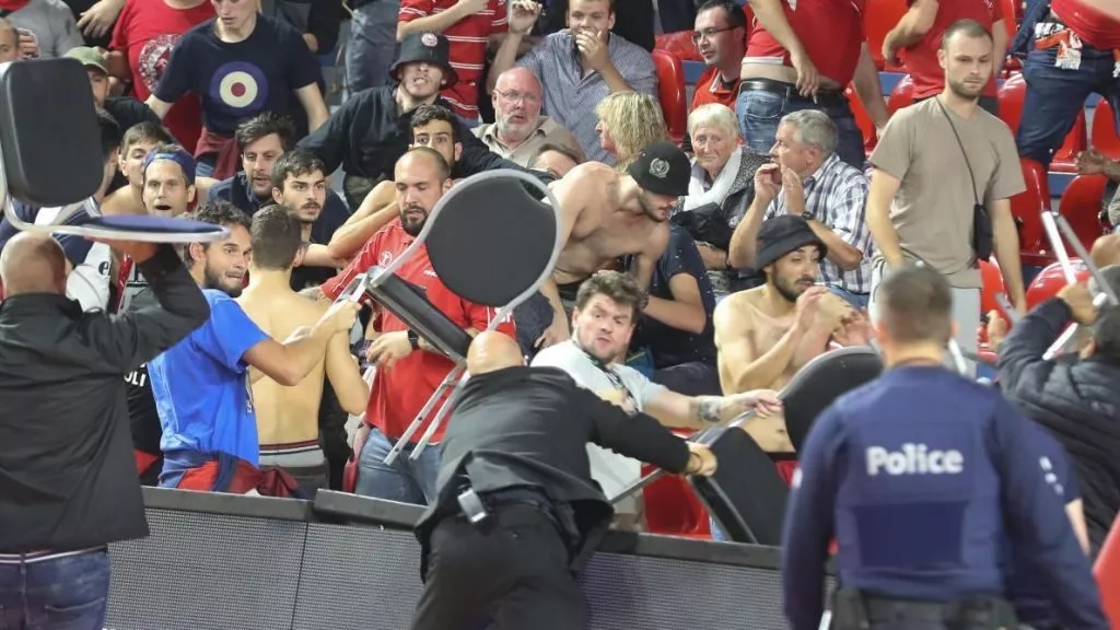 Під час баскетбольного матчу Ліги чемпіонів між Шарлеруа та Хапоель Тель-Авів побились фанати ізраїльського та бельгійського клубів.