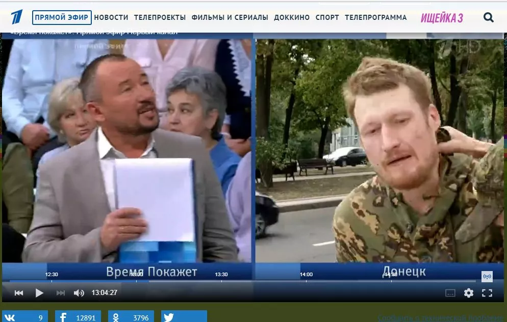В окупованому Донецьку напали на військового кореспондента сепаратистського проекту WarGonzo Семена Пегова. Це сталося під час ефіру програми “Час покаже” на Першому каналі.