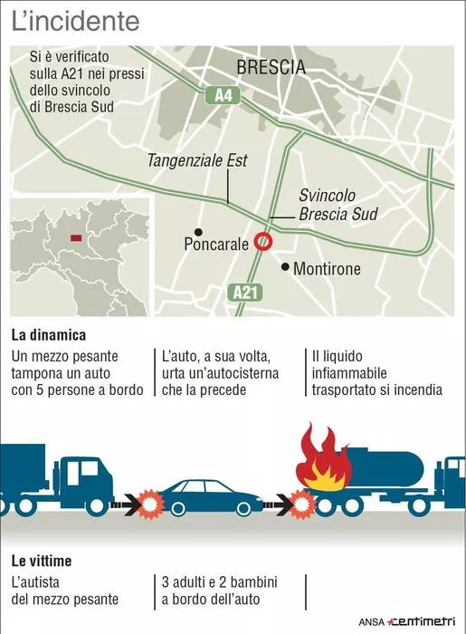 ДТП сталося у вівторок вдень на трасі поблизу міста Брешіа, зіткнення.повідомляє Європейська правда з посиланням на ANSA.
