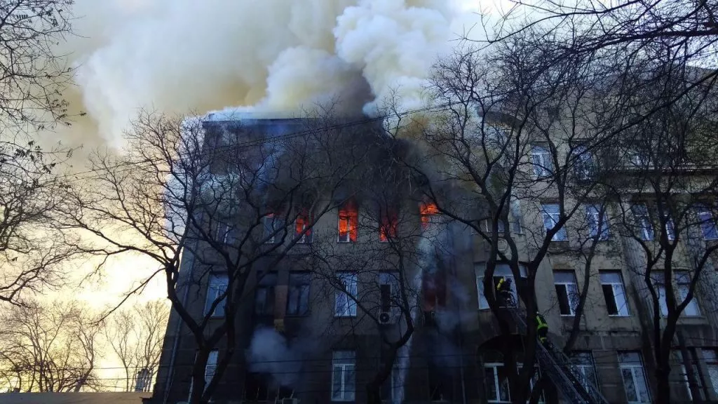 “4 грудня о 10:12.(м. Одеса) на 3 поверсі 6-ти поверхового навчального корпусу виникла пожежа. Станом на 12:10, площа пожежі орієнтовно складає 2000 м.кв. Роботи з евакуації людей завершено”, – йдеться в повідомленні.