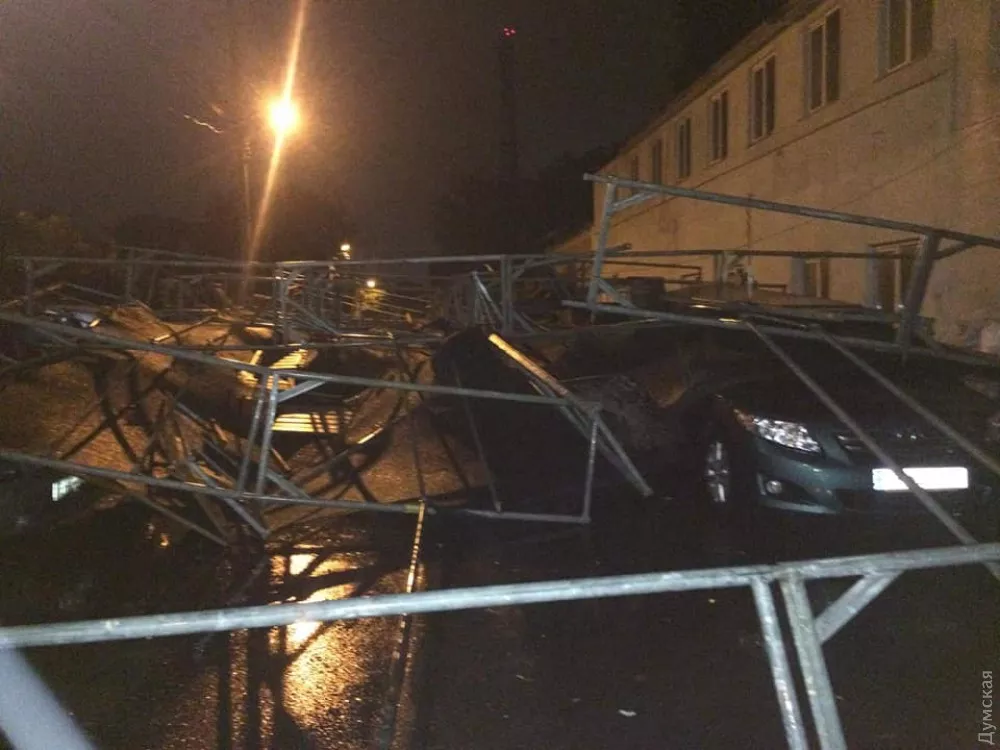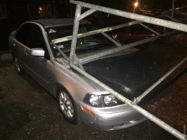 А ось вдень 4 серпня ураган здув громіздкі металеві риштування прямо на припарковані поруч авто, пошкодження отримали 14 машин.
