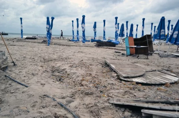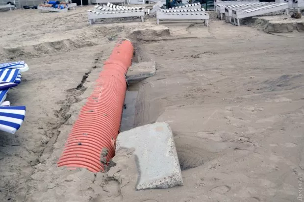 Не менше постраждав і відомий пляж “Аркадія”. Потоком води там вимило величезну траншею, яка оголила трубу, що йде з аквапарку.