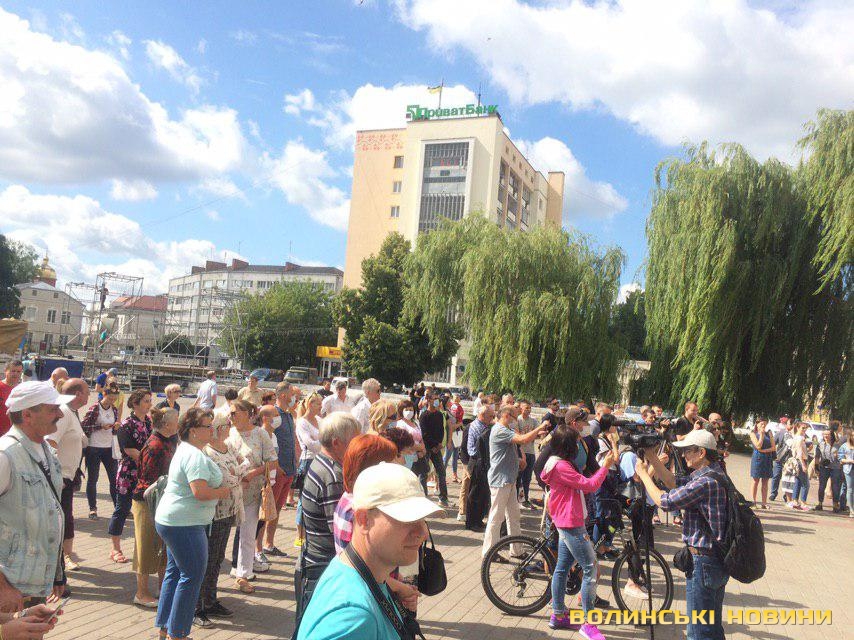 У центрі Луцька зібралися десятки людей, які вимагають, аби нарешті вирішили питання поширення неприємних запахів у місті.