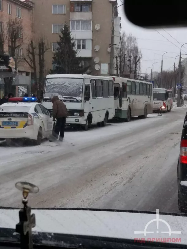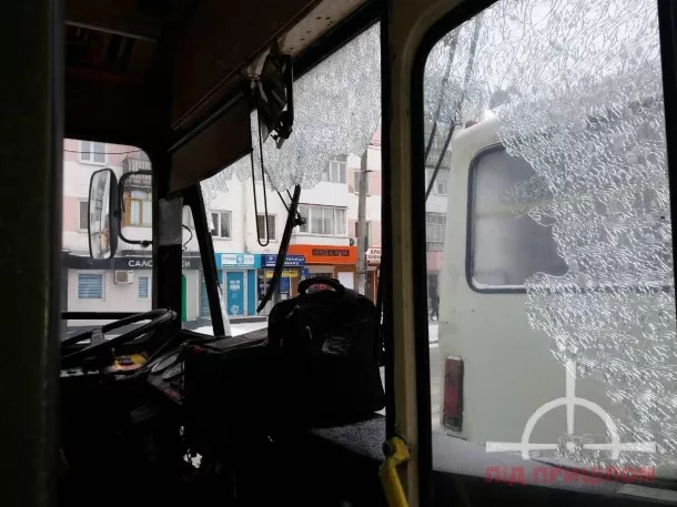 Від удару у тролейбуса розтрощене лобове скло, маршрутка зазнала незначних механічних ушкоджень.