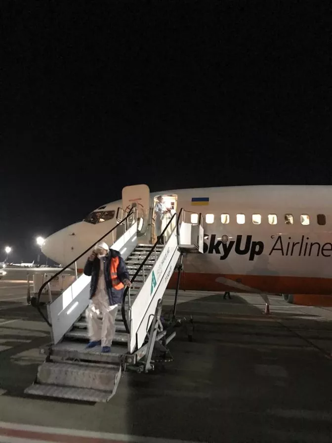 Близько 22:30 літак приземлився в аеропорті “Бориспіль”. На брифінгу, що передував прильоту українців, глава МЗС України Дмитро Кулеба наголосив: усі без виключення пасажири борту здорові. Перед оглядом українських медиків три перевірки їм провели італійські лікарі.
