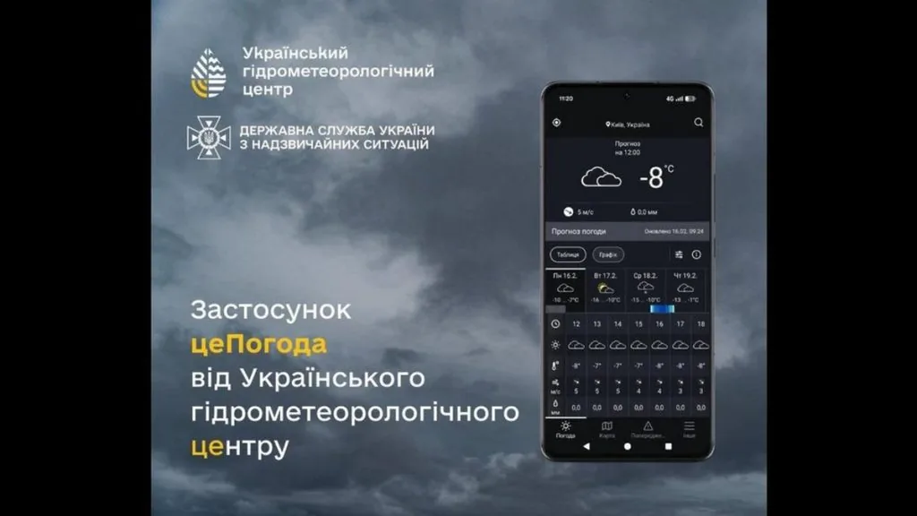 Український гідрометеорологічний центр та Державна служба з надзвичайних ситуацій (ДСНС) 27-го лютого оголосили про запуск нового мобільного застосунку — «цеПогода». Він автоматично визначить місцеперебування користувача, покаже погоду на 5 діб й попередить про небезпечні метеорологічні явища.
