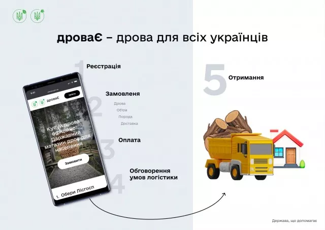 Для покупки дров необхідно буде виконати кілька простих кроків: зареєструватися на ресурсі, обрати лісгосп, визначитися із типом дров’яної продукції та її обсягом, здійснити оплату.