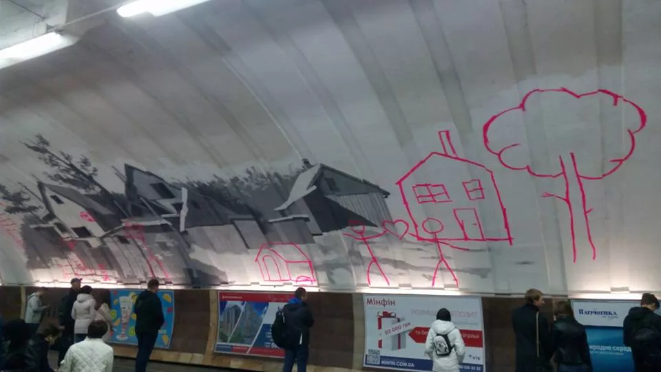 Вандали зіпсували мурал, що створюють у Києві на станції метро «Осокорки» відомі художники