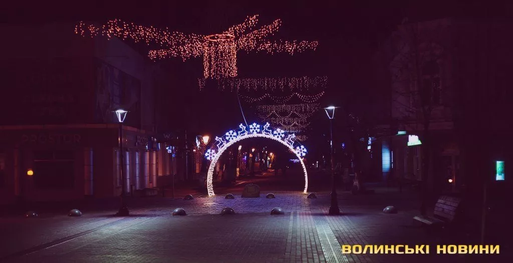 Вечірній Луцьк у сяйві святкової ілюмінації показали з висоти пташиного польоту.