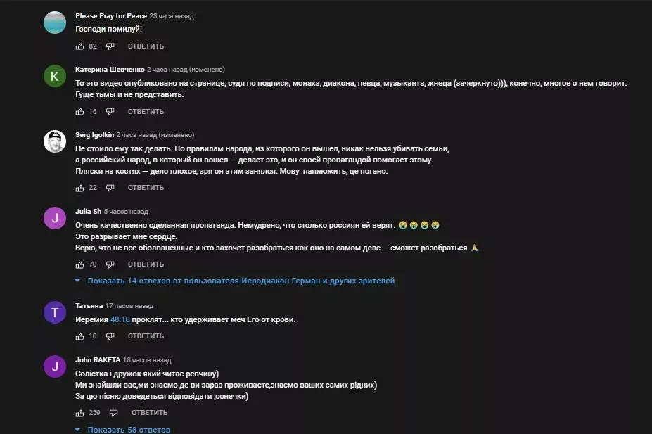 «Густішої пітьми і не уявити», «Не варто було йому так робити. За правилами народу, з якого він вийшов, ніяк не можна вбивати сім’ї», «Ми знайшли вас, ми знаємо, де ви зараз проживаєте, знаємо ваших самих рідних. За цю пісню доведеться відповідати», «Навіть гітлерівці, напевно, до такого б не змогли додуматися», – написали розлючені користувачі мережі.