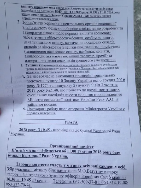 “Ми зібралися тут, бо військовослужбовців на пенсії дурять не один рік. Першого січня 2018 року Кабінет Міністрів України пообіцяв підвищити пенсії, але згодом відтермінував це ще на рік. Нас постійно дурять. У нас мізерні пенсії. Наприклад, я отримую лише дві тисячі”, – розповів майор у відставці Валентин Добрянський.