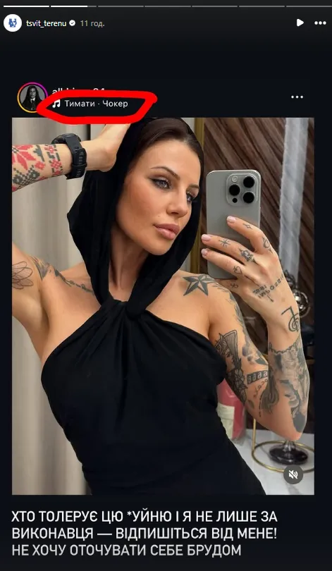 Ветеран війни, блогер і головний герой шоу «Холостяк-13» Олександр Будько на псевдо «Терен» назвав контент блогерки «дегенеративним», звинувативши її у поширенні проросійських наративів. Оборонця жахає кількість людей, котра споживає такий контент.