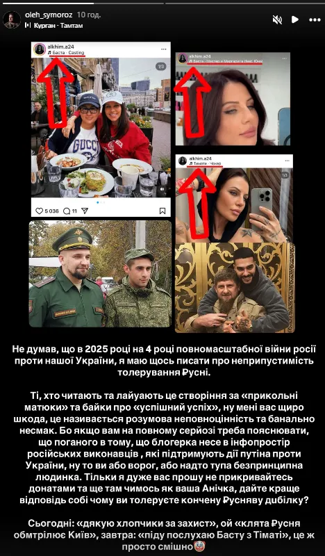 «Ті, хто читають і лайкають це створіння за мати і байки про «успішний успіх», ну мені вас щиро шкода, це називається розумова неповноцінність і банально несмак…. Якщо вам цілком серйозно потрібно пояснювати, що поганого у тому, що блогер несе в інфопростір російських виконавців, які підтримують дії Путіна проти України, то ви або ворог, або занадто тупа безпринципна людина. Тільки я дуже вас прошу не прикривайтеся донатами і ще там чимось, як ваша Анічка, — наголосив Симороз.