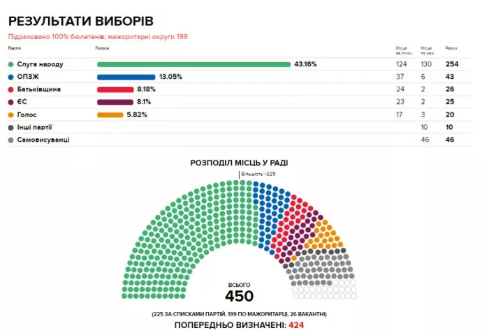 Відомі остаточні результати парламентських виборів: ЦВК опрацювала 100% протоколів