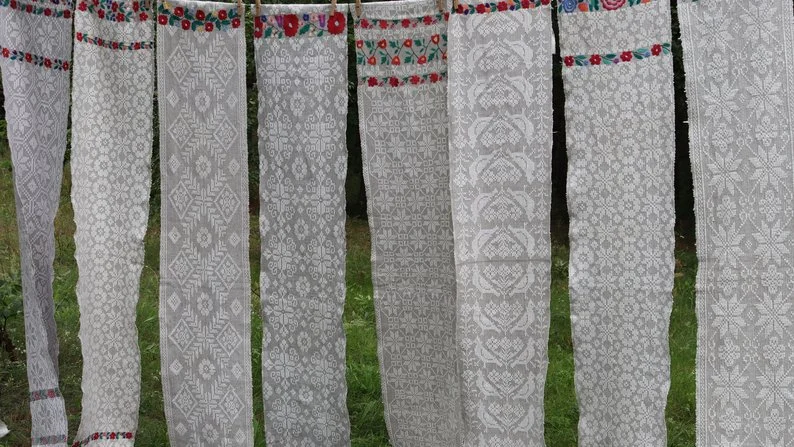 Також в місці відтворення обряду вивісили 12 рушників. Валентина Лоза пояснила: їх наречена діставала на показ перед відвідинами сватів. Згодом вони ставали її приданим.