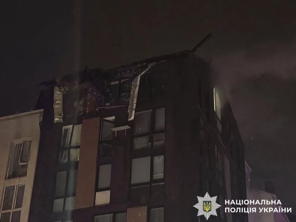 Також руйнування зафіксували у Києві. Там уламки ударного дрона впали на дах нежитлової будівлі в Голосіївському районі. Уламки також впали на проїзну частину дороги, вибухова хвиля пошкодила вікна та покрівлю 17-поверхової житлової будівлі. Пожежу, яка виникла від падіння уламків, загасили, повідомив мер Києва Віталій Кличко.