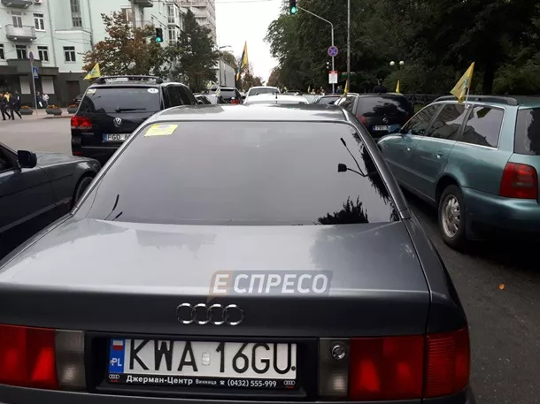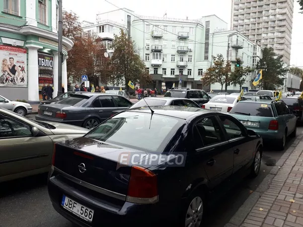 На акцію зібралися власники автомобілів з іноземною реєстрацією. Зокрема, видно машини на литовських, польських та естонських номерах.
