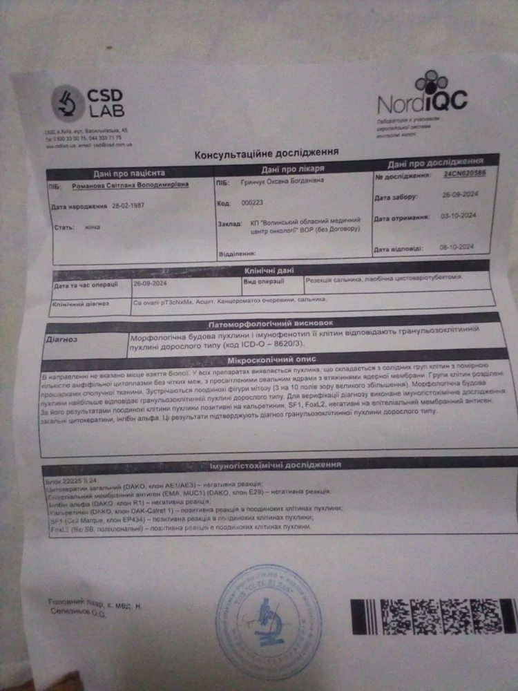 Жінка вже перенесла дві операції, та одну хіміотерапію, але лікування буде довготривале. Тому донька звертається з проханням про допомогу в надзвичайно скрутний час для їхньої родини.