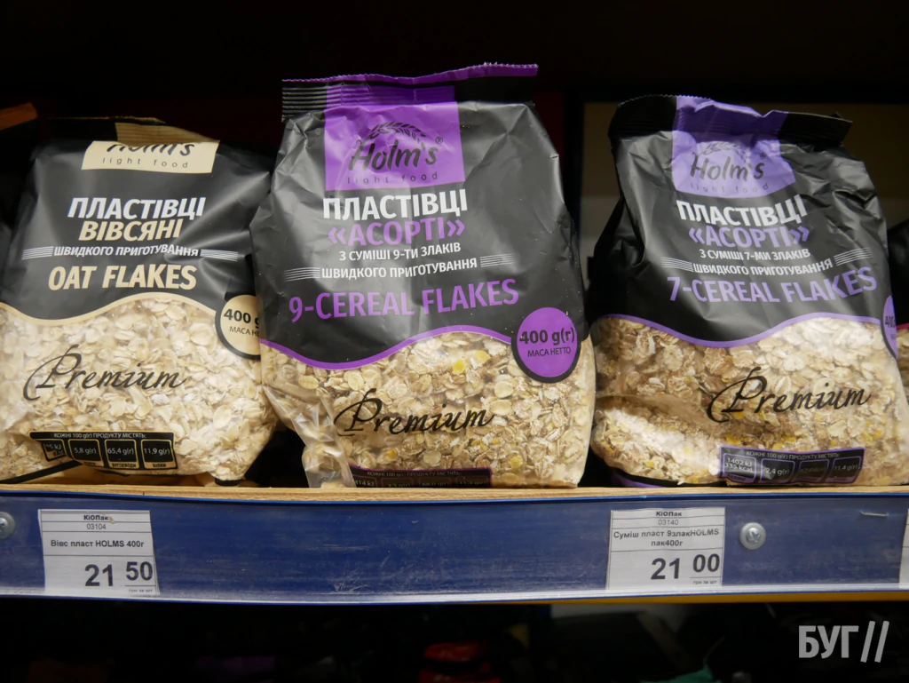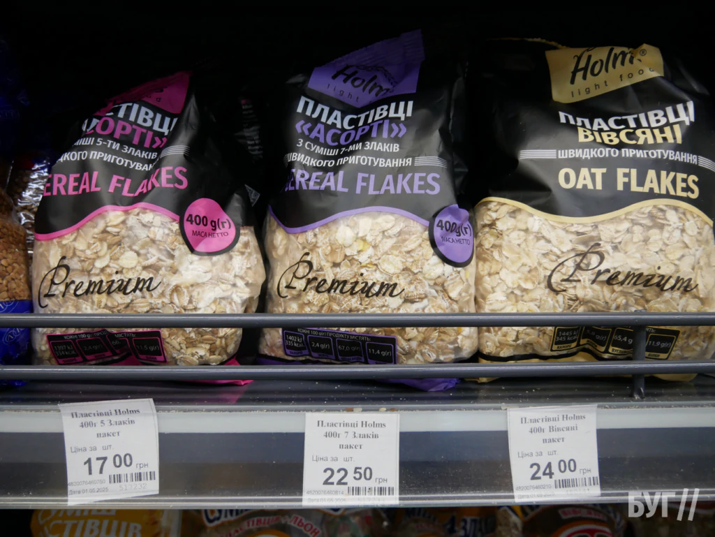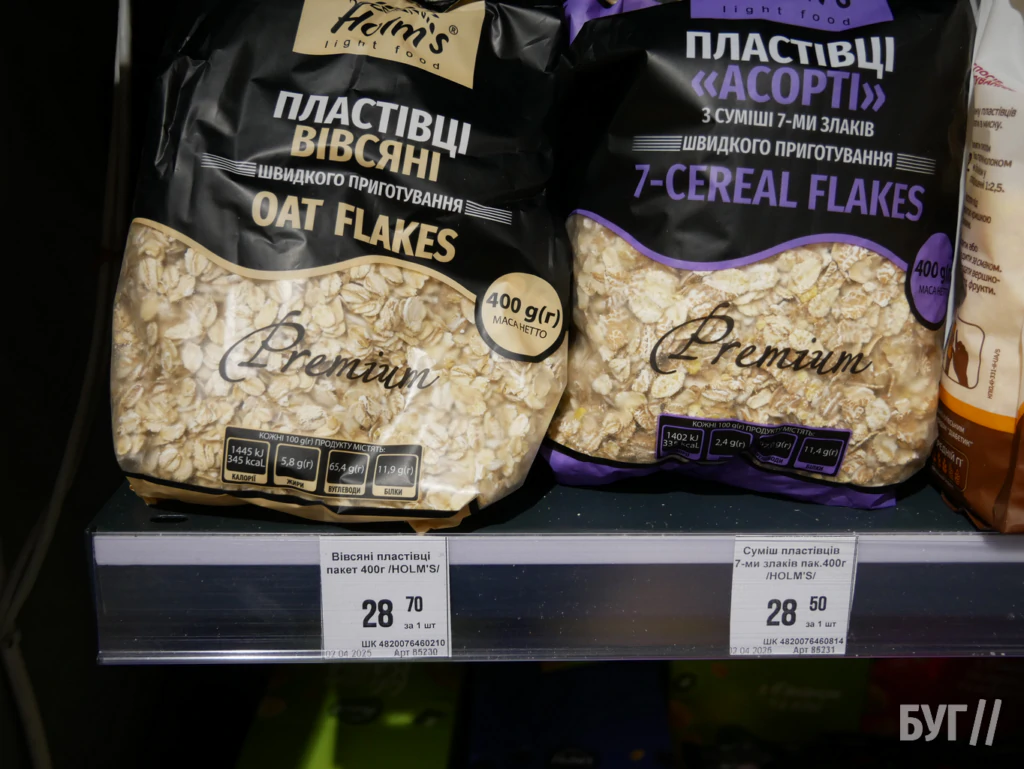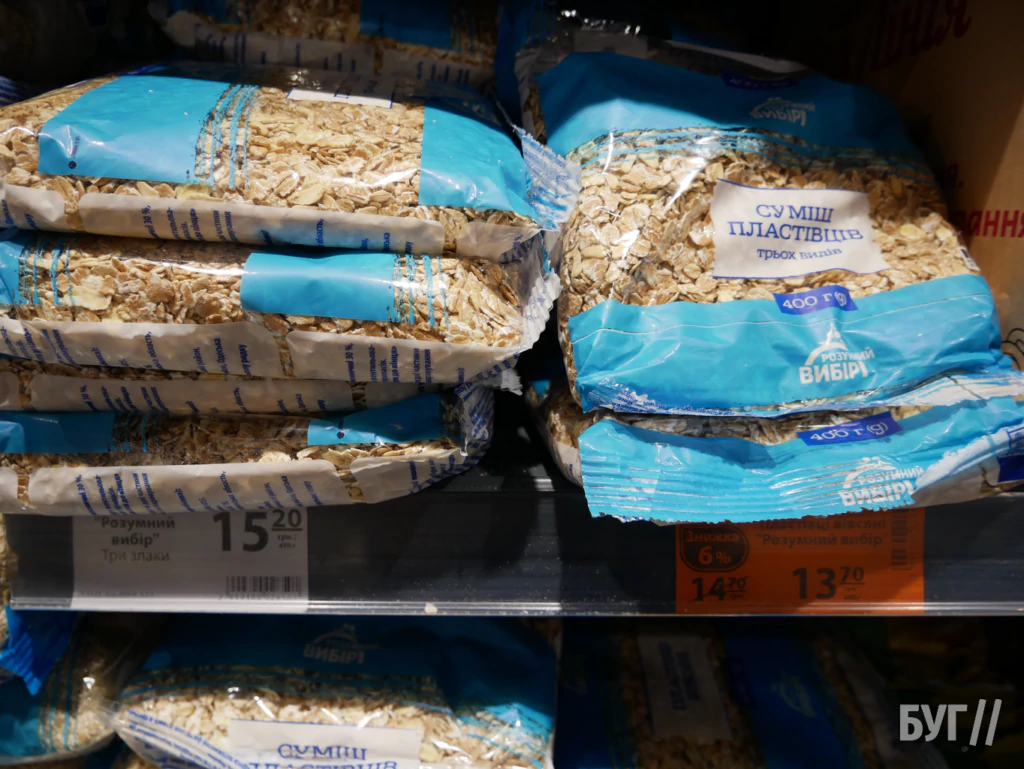У «АТБ» вівсянка коштує 14,70–15,20 грн, у «Рукавичці» — від 14,90 грн, у «Нашому краї» — 17–24 грн, у «Кіопаку» — 20–22 грн, у «Салюті» — в середньому 28,50 грн.