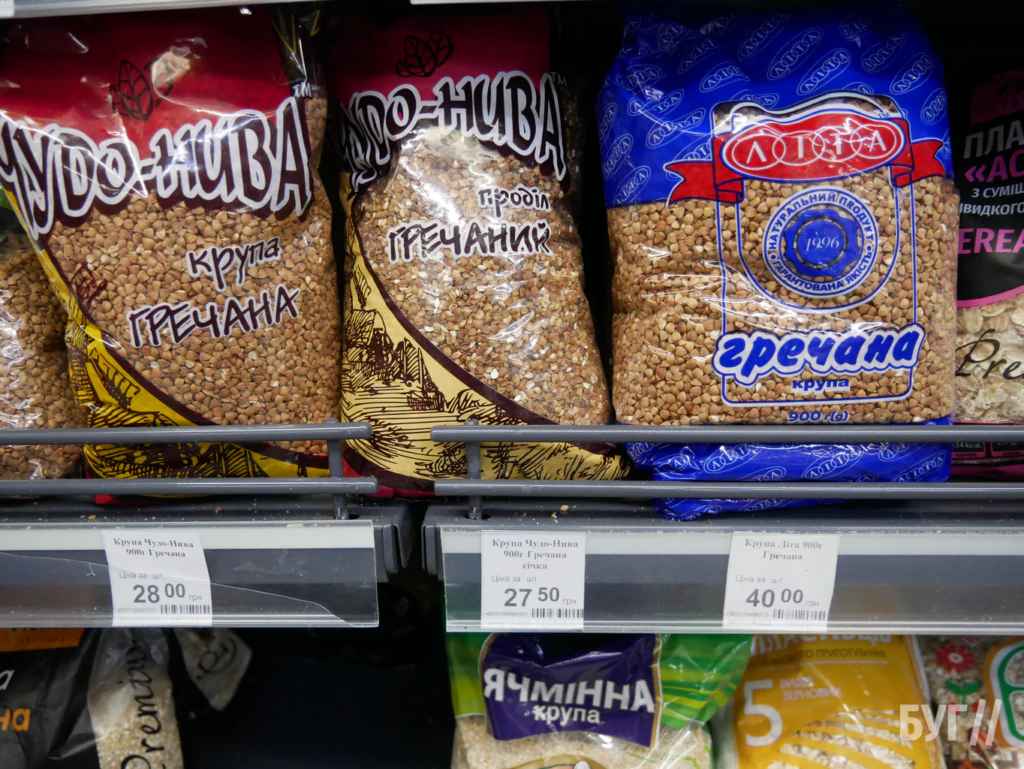 У гуртівні «Кіопак» гречка коштує 27,50 грн. У супермаркеті «Наш край» — від 27,50 до 40 грн, у «Салюті» — 37,90–43 грн, у «Рукавичці» та «АТБ» — по 31,30 грн.