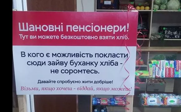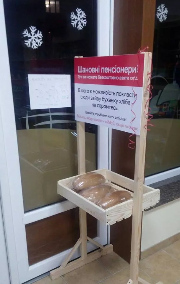 «Дуже сумно що пенсіонери соромляться брати звідти. Один дідусь, 75 років, інвалід, навіть розплакався, коли я дала йому безкоштовну буханку! Пенсіонери перестали вірити в безкорисні вчинки суспільства. Але, дуже тішить молодь! Яка читаючи дану табличку, біжить до каси по хліб і з посмішкою кладе дідусям та бабусям», – прокоментувала підприємець Юлія Хильчук.