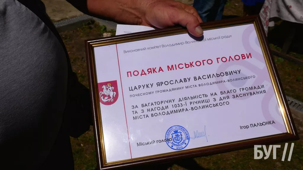 Першим перед пристуніми виступив міський голова Ігор Пальонка, який вручив також грошові нагороди почесним мешканцям Володимира.