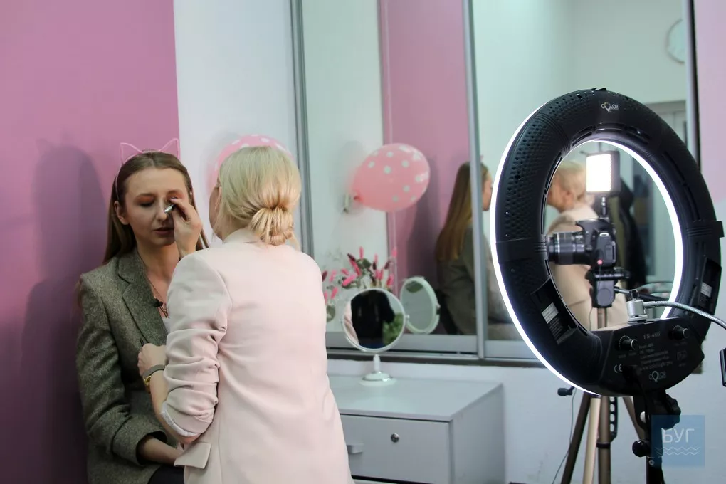 Нашим журналістам пощастило двічі, адже майстриня не лише поділилась з нашими глядачами основними порадами стосовно виконання макіяжу, а й продемонструвала на нашій журналістці свою майстерність.