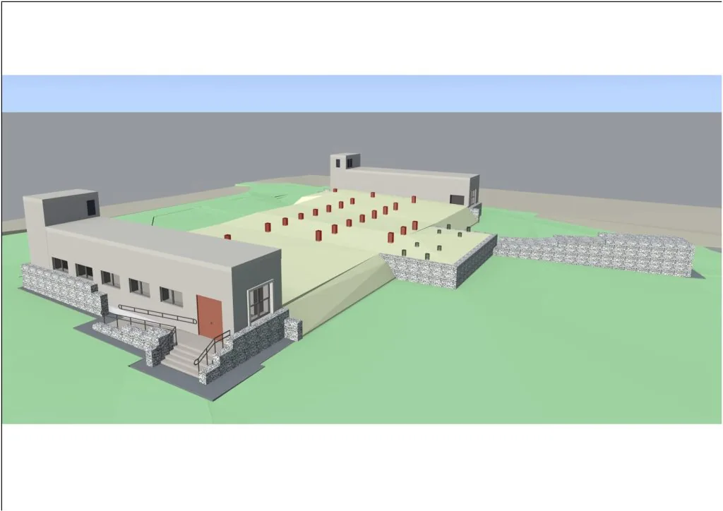 З тендерної документації відомо, що навчальний корпус запроектовано триповерховим, складної конфігурації. Запроектована захисна споруда подвійного призначення з властивостями укриття, площею 385,04 м2.