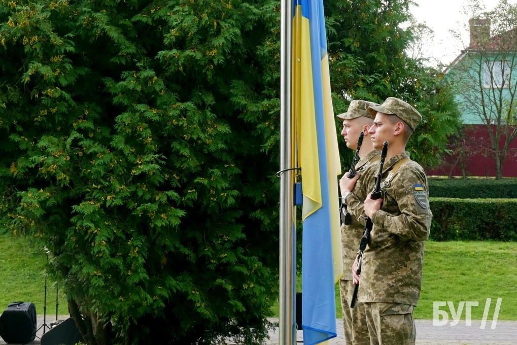 Церемонія розпочалася із загальнонаціональної хвилини мовчання за усіма полеглими українцями у війні з російським агресором. Після цього військовий оркестр заграв Гімн України, а на флагштоці військовослужбовці ЗСУ почали підіймати національний прапор України, кольори якого відомі зараз у всьому світі, як символ незламності, хоробрості та свободи.